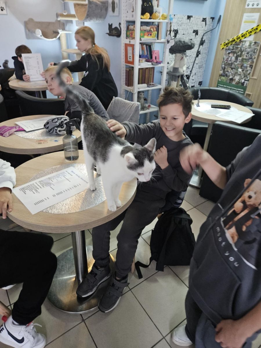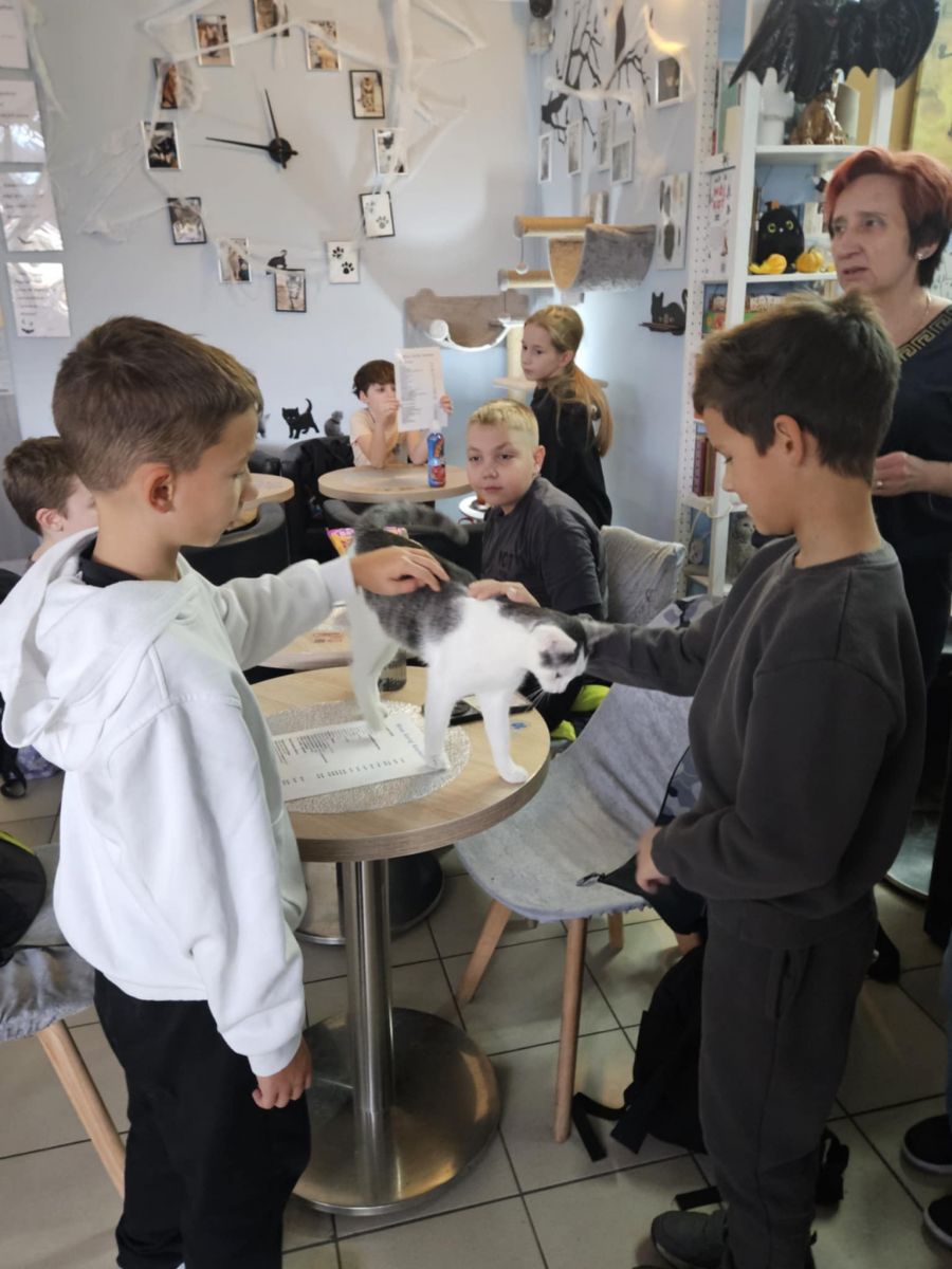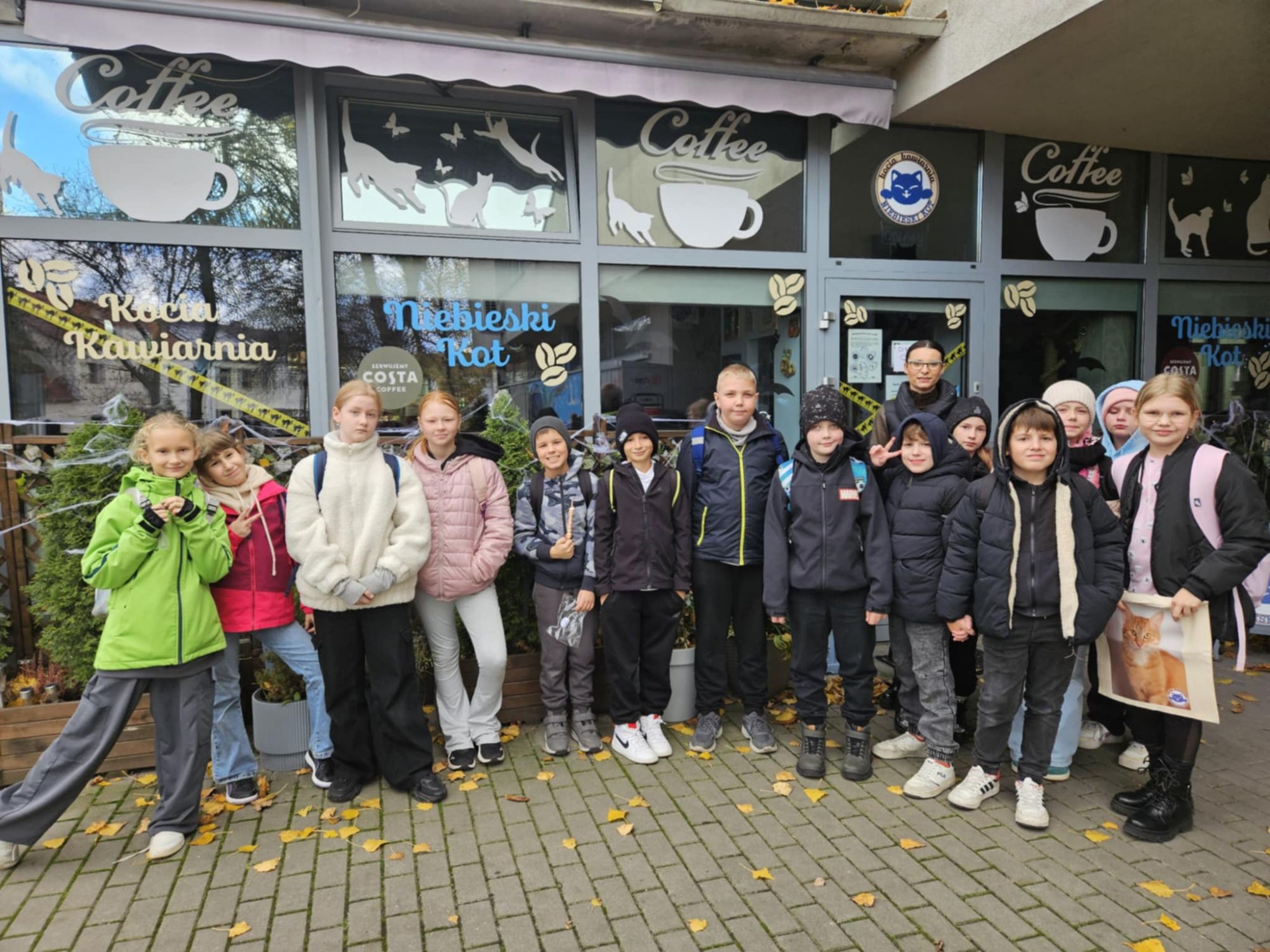 Dziś uczniowie klasy 4a wybrali się na wyjątkową wycieczkę do Opola! Najpierw odwiedziliśmy Panią Karmelarz, gdzie dzieci poznały tajniki tworzenia karmelu, lizaków i cukierków. Każdy mógł spróbować swoich sił w roli małego cukiernika, a na koniec zrobić pamiątkowe zdjęcie i zdobyć autograf od znanej w sieci Pani Karmelarz — gwiazdy YouTube’a i TikToka! Po słodkiej przygodzie udaliśmy się spacerkiem do Kociej Kawiarni, gdzie w przytulnej atmosferze, wśród mruczących i niezwykle towarzyskich kotów, mogliśmy napić się ciepłej herbaty, kawy lub kakao oraz skosztować pysznych ciast. Koty, które tam mieszkają, są prawdziwymi rezydentami, ale każdy z nich wciąż czeka na swój nowy, kochający dom — bo kotki z kawiarni można adoptować. Uczniowie nie zapomnieli o swoich futrzastych przyjaciołach — przywieźli karmę i zabawki, by wspomóc ich opiekę. To był dzień pełen uśmiechu, słodyczy i ciepła – w sam raz na jesienną przygodę!