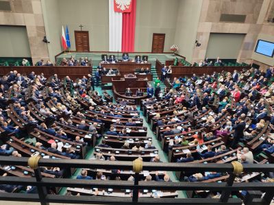 Do Sejmu RP 24 września br. pojechaliśmy na zaproszenie Posła na Sejm Tomasza Kostusia, a w tej niecodziennej wyprawie towarzyszył nam Burmistrz Ozimka Mirosław Wieszołek. Przed wejściem do budynku Sejmu zostaliśmy dokładnie sprawdzeni, a także nasze rzeczy przez wyszkolonych strażników. Historię Sejmu i parlamentaryzmu w Polsce opowiedziała nam przewodniczka, pokazując wielką makietę kompleksu Sejmu i Senatu. Nasza grupa uczniów klas siódmej i ósmej z wychowawczyniami Patrycją Kuznowicz i Violettą Oliwą miała możliwość na żywo zobaczyć otwarcie obrad 41. posiedzenia Sejmu RP X kadencji poprzez trzykrotne uderzenie laską marszałkowską przez Marszałka Sejmu. Ta laska ma znaczenie historyczne i jest symbolem godności urzędu Marszałka. Kolejnym niecodziennym momentem naszej wycieczki było powitanie uczniów z JEDYNKI włącznie z Panem Burmistrzem przez Wicemarszałka Sejmu. Byliśmy także świadkami głosowania posłów, którego wyniki błyskawicznie pokazały się na wielkich monitorach. Sala sejmowa okazała się ogromna i zrobiła na uczniach duże wrażenie. Posłowie, którzy do tej pory byli znani wyłącznie z telewizji, mijali nas na sejmowych korytarzach i z sympatią rozmawiali z nami. Nasz gospodarz, Poseł Tomasz Kostuś, opowiadał o swojej pracy, o obowiązkach poselskich, a także przekazał wiele interesujących ciekawostek. Pokazał nam też ciekawe miejsca w Sejmie, np. przepiękną bibliotekę. Zanim poszliśmy na spacer po stolicy, każdy chciał zrobić sobie z Panem Posłem pamiątkowe zdjęcie. Na zakończenie spotkania wręczyliśmy podziękowania dla Posła na Sejm RP Tomasza Kostusia oraz Burmistrza Ozimka Mirosława Wieszołka za zaproszenie nas do Sejmu RP i zorganizowanie tego wspaniałego wydarzenia, poświęcony dla uczniów JEDYNKI cenny czas między ważnymi obowiązkami oraz ciekawą lekcję wiedzy obywatelskiej i patriotyzmu.