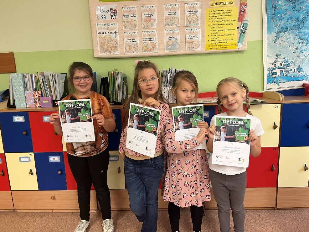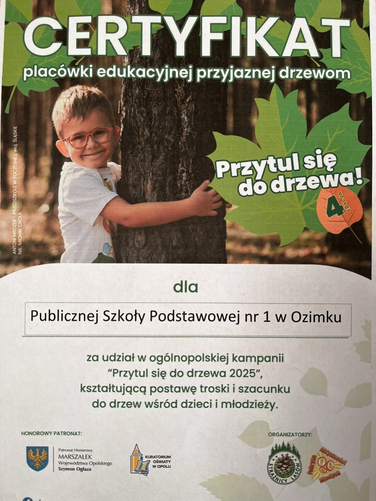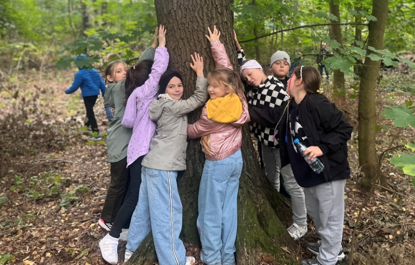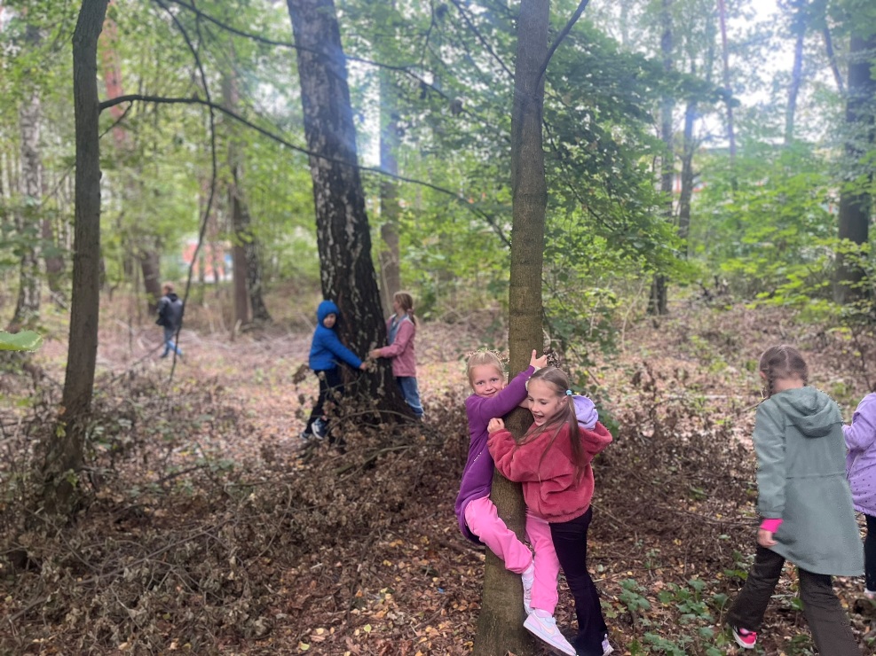 Po raz czwarty nasza szkoła przyłączyła się do ogólnopolskiej kampanii „Przytul się do Drzewa”. Akcja ma na celu zwrócenie uwagi na bezpieczne i mądre poruszanie się po lasach oraz uwrażliwienie na rzeczy, które mogą nieświadomie doprowadzić do pożaru. Podczas wycieczki do lasu uczniowie klasy 2a chętnie i z radością przytulali się do drzew, doświadczając korzyści płynących z drzewoterapii. Biorąc udział w akcji chcieliśmy pokazać, że los drzew nie jest nam obojętny oraz stworzyć wspólnie z innymi placówkami EKO KOLAŻ z okazji Światowego Dnia Drzewa, który obchodzony jest 10 października