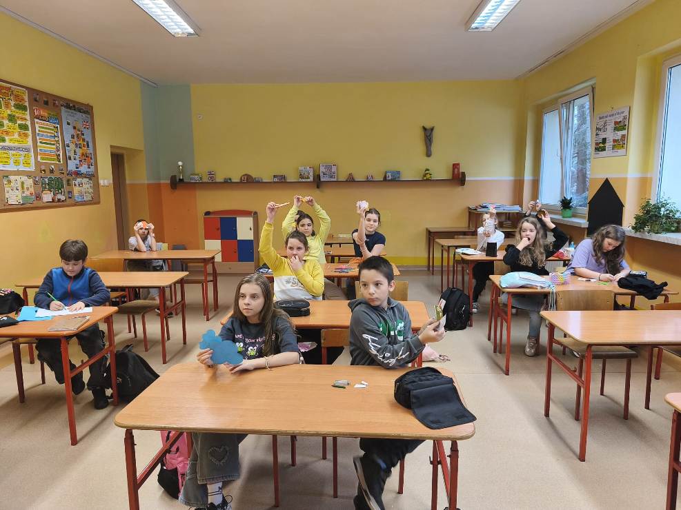 Lekcja z książki zastosowana została w praktyce podczas akcji "Kwiaty Dobrych Słów"! Uczniowie wykonali własnoręcznie, a potem wręczali sobie kartki z miłymi słowami, wzmacniając prawdziwe przyjaźnie – tak jak "Angielskie Różyczki" naprawiły swoją relację. Zobaczcie, jak działa moc życzliwości!