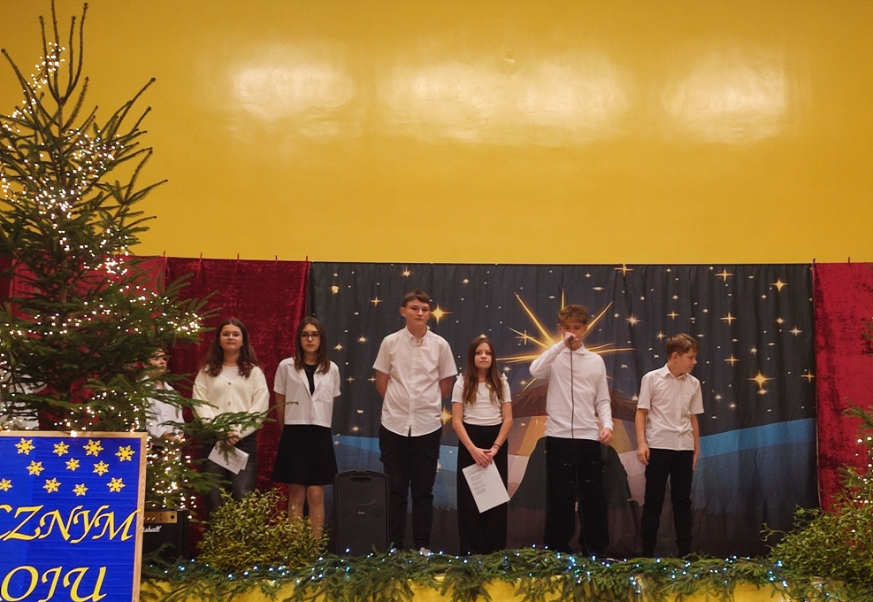 Wydarzenie uświetniły występy uczniów naszej szkoły. W świąteczny nastrój wszystkich uczestników wprowadziło przedstawienie przygotowane przez uczniów klas 2 i 7, które spotkało się z bardzo ciepłym przyjęciem publiczności . Następnie odbył się koncert świąteczny, pełen kolęd i piosenek bożonarodzeniowych .