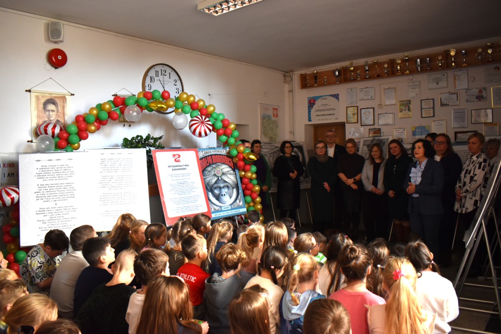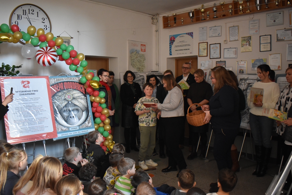 W tym dniu nasi najmłodsi czytelnicy z klas 1-3 otrzymali dyplomy za wzorowe czytelnictwo, które wręczały nauczycielki- bibliotekarki ze wszystkich szkół gminnych oraz bibliotekarki z biblioteki miejskiej, a także Burmistrz Wieszołek. Nagrody otrzymali: Oliwia Domaszczyńska, Wiktoria Kowalewska, Gerard Ślusarczyk, Maja Bartyla, Lena Ciongwa, Przemysław Grajoszek, Maria Lewandowska, Julia Makuch, Zofia Czaja, Oliwia Ebel, Dominika Musiał, Amelia Solińska, Mikołaj Szczepański. Słodki upominek wręczała pani Justyna Bęben - pracownik GZO w Ozimku.