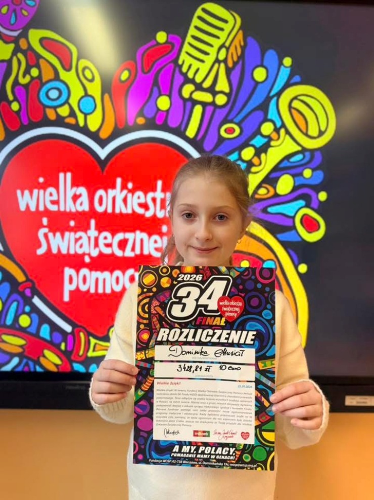 Jesteśmy niezwykle dumni z naszych uczniów–wolontariuszy, którzy z uśmiechem i wielkim zaangażowaniem kwestowali na rzecz WOŚP. Pokazaliście, że pomaganie ma prawdziwą moc.